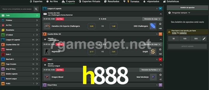 A aposta h888 oferece aos jogadores a experiência mais conveniente de apostas em eSports!